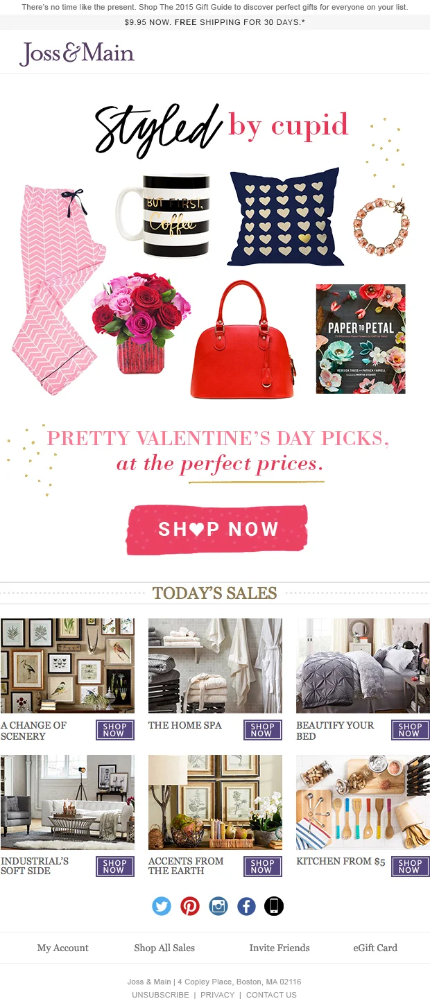 Early in my career, I contracted at Joss & Main a branch of furniture giant, Wayfair. From plentiful subject line tests to SEO content to clever names for sales events, I dove into the digital retail space head first. I also played a key role in a rebranding overhaul of Joss & Main's UX on desktop, mobile web and mobile app, and centralized landing pages.